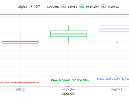 ggplot2 썸네일형 리스트형 [R프로그래밍] ggplot2:: 여러개의 ggsurvplot 합치기 / arrange multiple ggsurvplots ggsurvplot 정말 좋은 graphic tool 입니다. 논문 투고를 준비하다보면... ggsurvplot 을 이용해서 그린 figure 를 하나의 figure 로 합치고 싶을 때가 있습니다. 이럴때 쓰는 코드를 알려드리겠습니다. splots [R프로그래밍] 데이터시각화 with ggplot2:: 그래프 예쁘게 그리기, 경계선 지우기 오늘 포스팅은 간단하면서도 상당히 유용한 포스팅입니다. figure 작성을 할때 보통 예쁘다는 figure 들은 x축과 y축은 조금 두껍게 표시되고, 나머지 line 은 제거해버리는 경우가 많죠. 개인적으로는 NEJM 에 실리는 figure 들이 예쁜 녀석들이 많다고 생각하는데 그녀석들처럼 ggplot 에서 그렇게 margin 과 grid 를 제거해버리는 코드는 다음과 같습니다. 참 쉽죠? library(ggplot2) ggplot(aes(...))+ theme_bw()+ theme(axis.line = element_line(size=1), axis.ticks = element_line(size=1), panel.border = element_blank(), panel.grid.major = eleme.. [R프로그래밍] 데이터시각화 with ggplot2:: geom_histogram, 히스토그램 in R 이리저리 논문작업에 치어살다보니... 포스팅 할 시간은 점점 줄어드네요. 최근엔 manuscript 작성에 신경을 쓰다보니 사실 R graphics 쪽은 거의 손을 놓고 있었습니다. 덕분에 간단하게 하던 작업들도 기억이 안나서 reference 들을 찾아보게 되네요. 그래서 오늘 포스팅 내용은 아주 간단하지만 데이터 분포를 확인하는데 아주 유용한, 히스토그램, histogram 을 ggplot2 를 이용하여 작성하는 방법을 알아보겠습니다. ggplot2(dataframe, aes(x= ooo ))+ geom_histogram() 위의 coding 이 가장 기본적인 coding 입니다. ggplot2 에서 dataframe 을 지정하여 주고, aes 를 이용하여 x 축을 원하는 변수로 mapping 시켜 .. [R프로그래밍] 데이터시각화 with ggplot2:: 범례 (legend) 제거하기 (remove) ggplot 으로 figure 를 그렸을 때, 범례 (legend) 를 제거하고 싶을 때가 있습니다. 그럴때 사용하는 방법에 대하여 포스팅하겠습니다. iris 데이터 기준으로 말씀드리겠습니다. iris 데이터에서 Species 에 따른 Sepal.Length 와 Petal.Length 의 분포를 보고 싶어서 아래와 같은 figure 를 그렸습니다. ggplot(iris, aes(Sepal.Length, Petal.Length, color=Species))+ geom_point()+ theme_bw() 위 그림의 우측에 나와있는 범례를 지우기 위해서는 어떻게 해야할까요?? 방법은 다음과 같습니다.ggplot(iris, aes(Sepal.Length, Petal.Length, color=Species))+ .. [R프로그래밍] 데이터시각화 with ggplot2::sec_axis, dual axis graph, 2개의 축을 가진 그래프 그리기 데이터를 제시할때, 한개의 그래프 안에 2가지의 자료를 함께 보여주고 싶을 때가 있습니다.이러한 경우, 2가지 자료의 단위 혹은 값이 상당히 다르다면, 한개의 그래프 안에 2개의 자료를 모두 제시하였을 때, 2개의 자료가 따로따로 떨어져서 보여지겠죠? Iris 데이터를 이용하여 Sepal.Length 와 Petal.Length 의 분포를 하나의 그래프에 그린다고 가정해보겠습니다.극적인 효과를 위하여, Petal.Width 의 값을 전체적으로 1/10 로 감소시켜서 그래프를 그려보겠습니다. Sepal.Length 의 분포는 boxplot 을 이용하여 Species 별로 나타내고,Petal.Width 의 분포는 dot plot 을 이용하여 Species 별로 나타내겠습니다. 일반적인 방식으로 나타내면 아래와.. [R프로그래밍] 데이터시각화 with ggplot2::facet, 각각의 facet 에 annotation, text 넣기 늘 포스팅 주제는 바로 R graphics 의 꽃. ggplot2 와 관련된 내용입니다. 그 중에서도 ggplot 에서 자주 쓰는 기능 중의 하나인 facet_grid 혹은 facet_wrap 을 사용하였을 때, 각각의 facet 에 annotation 혹은 text 를 넣는 방법을 알아보겠습니다. sample data 는 iris 를 사용할 예정이며, iris 의 data 의 Sepal.Length 와 Petal.Length 의 correlation 를 Species 로 구분하여 plotting 해보겠습니다. 일단 코드부터 살펴보겠습니다. library(ggplot2) r1 이전 1 다음